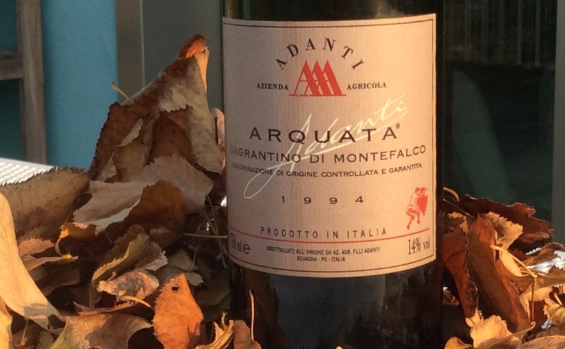 The hill town of Spello in Umbria, rich in both beauty and probably money, has a bit of interest for the wine person. A well stocked, straightforward alimentari in the ever upward main street has quite a few oldies on the shelves, most with clean labels and good fill levels. Very fond memories of Adanti making great wine in the late 80s and early 90s made it easy for this to find its way into the backpack. The cork was firm and only stained for a couple of millimeters. The first tentative sniff was autumnal but still kicking. The flavours started a bit subdued but happily filled out toward the end with impeccably clean, still fresh cherries and blackberries. The tannins are becoming a melting ghost of what may have been but the acidity’s still just freshening things up. Held on and got better towards the end of the bottle. Looking a whole lot better in old age than this creaky blogger.